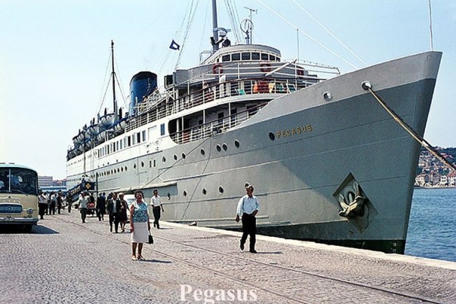 Njemačke su putničke agencije u sezoni 1968. godine s polaskom iz Frankfurta organizirale dvotjedna kružna putovanja brodom PEGASUS po cijeni od 694 njemačke marke s itinererom: Venecija, Split, Pirej, Iraklion, Limassol, Haifa. Famagusta, Rodos, Pirej, Krf, Dubrovnik, Venecija.