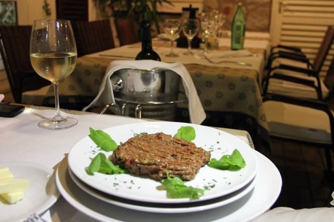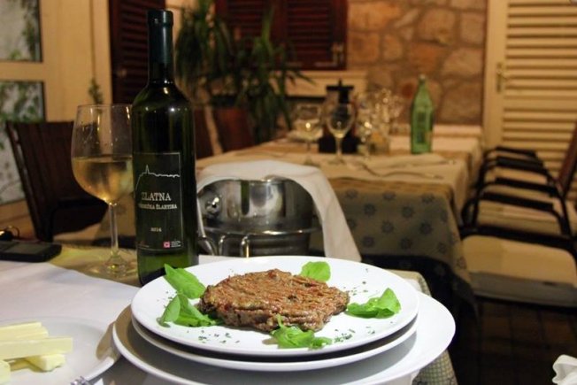 Biftek je u ponudi za 90 kuna, a uz njega najbolje ide vrhunsko bijelo vino Žlahtina zlatna, Vrbnik te crno vino Plavac mali, Radović, oba 0,75 litara po cijeni od 90 kuna.