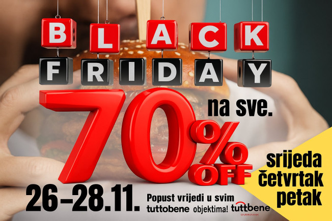 TuttoBene je već godinama poznat po fantastičnim ponudama koje razmaze goste, a ovogodišnja Black Friday akcija postala je pravi hit i – može se reći – tradicija. Ovoga puta kreće ranije nego ikad: od srijede do petka, 26. – 28. studenoga, očekuje vas nevjerojatnih -70% popusta na sve!