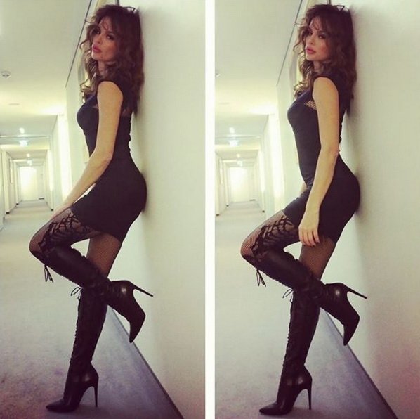 Na Facebooku su se fanovi morali zadovoljiti nešto čednijom kombinacijom u seksi kožnim čizmama.