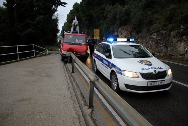 Kamion dubrovačkih registarskih tablica se kretao iz smjera Grada, a kojom prilikom je zbog slabe vidljivosti, pljuska i neprilagođene brzine udario u zaštitnu ogradu.