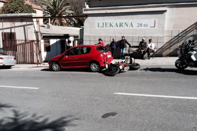 Prometna nesreća dogodila se u blizini Doma zdravlja oko 11 sati, a riječ je o sudaru motocikla i osobnog vozila dubrovačkih registracijskih oznaka.