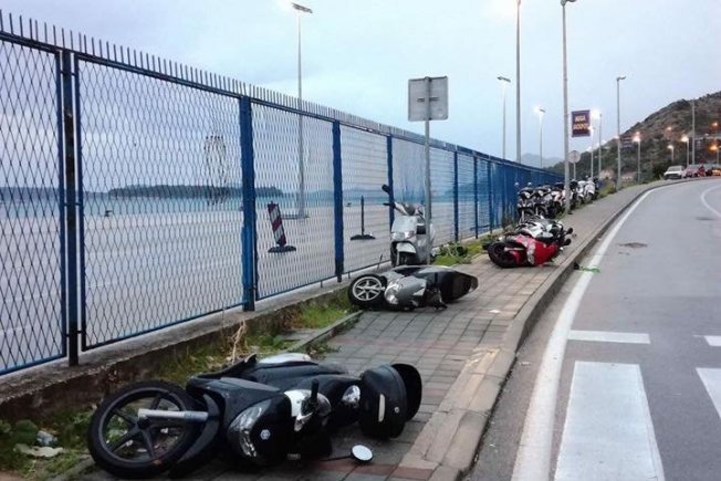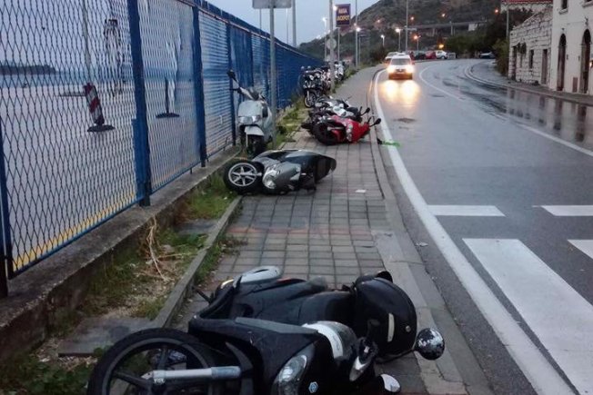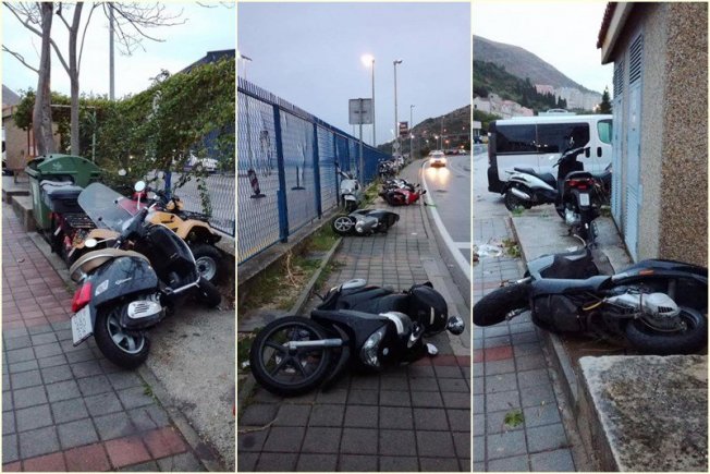Bura je napravila nered i u Gružu gdje je razbacala parkirane mopede i motocikle te ljudima lomila kišobrane.