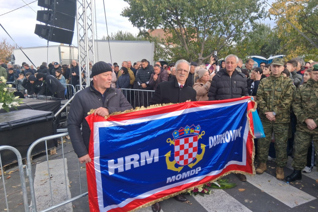 Članovi Udruge dubrovačkih branitelja HRM Dubrovnik odali su počast žrtvama u Škabrnji, položili vijenac i zapalili svijeće na spomen obilježju.