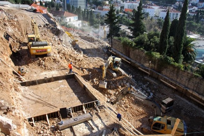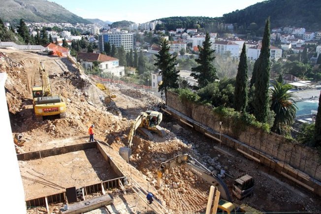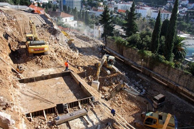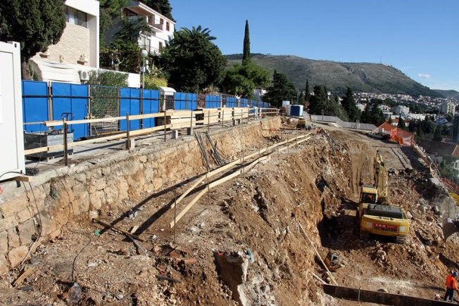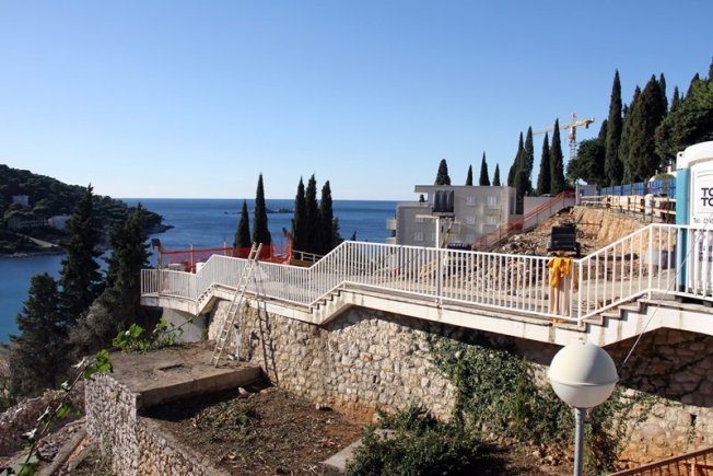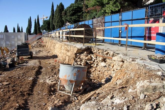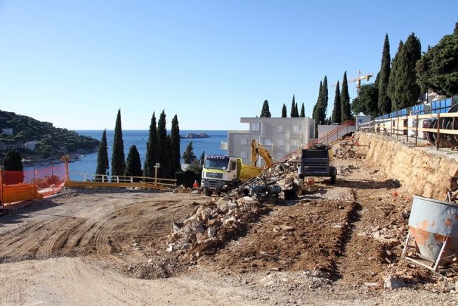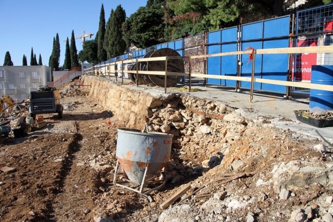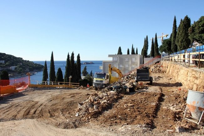 U prilogu pogledajte fotogaleriju s gradilišta, pogled na Uvalu bez hotela i stare zidove koji su izvrili pored ceste, još iz vremena Austro-Ugarske.