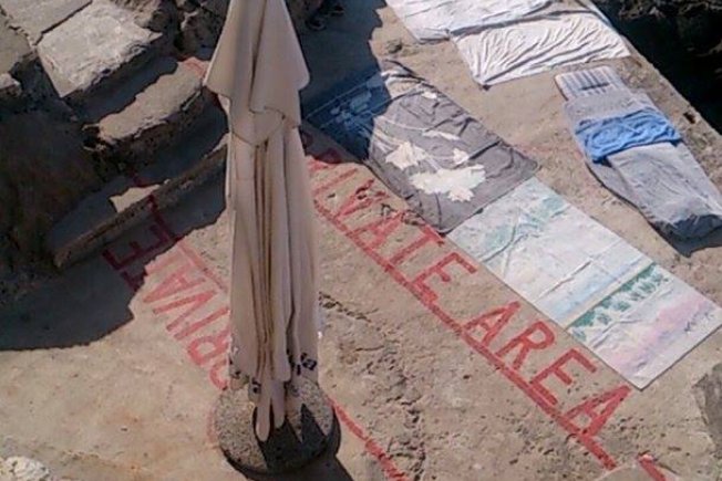 Jedan od naših sugrađana tako je iscrtao svoj dio na Buži te ga označio kao 'private'. Prema riječima ostalih kupača, ali i onih koji često siđu na Bužu, dolazi gotovo svakog dana, rano ujutro te se 'širi koliko može i ne može'. Šugamane i svoje stvari ostavlja posvuda te na taj način ometa prolazak ostalih kupača i njihov ulazak u more.