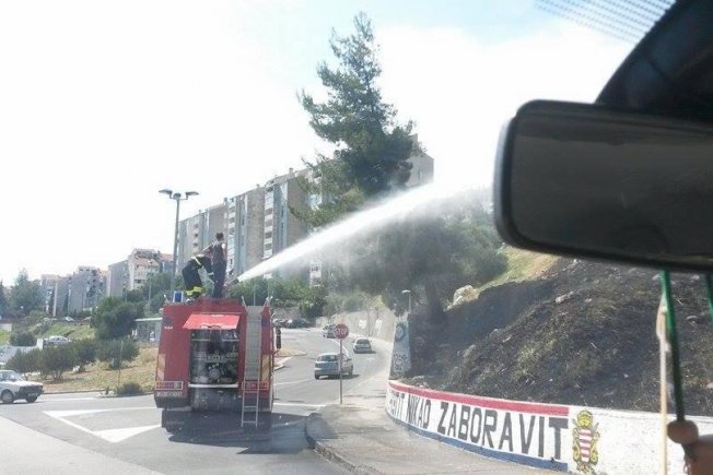 Podsjetimo, jučer popodne oko 15 sati zapalila se trava i nisko raslinje pored trgovine 'Pupo'. Požar je već nakon 20 minuta lokaloziran, a u potpunosti ugašen u 15.55 sati. Izgorena površeina je 50x30 metara.