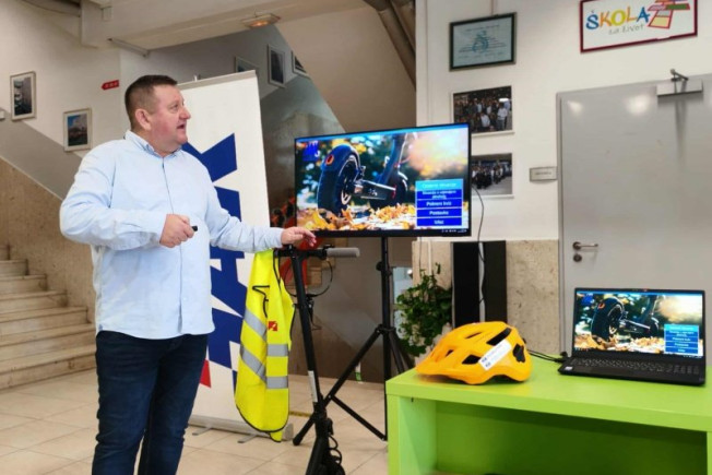 "Pitanje je li nosite svu sigurnosnu opremu kad vozite romobil, to je osnovno pitanje. Vozite li romobil onako kako je zakon propisao da ga treba voziti? Vozite li ga po kolniku ili nogostupu? Pazite li na druga vozila koja su oko vas, kao i na ljude? To su sve pitanja koja morate sami sebi postaviti, jer svaka vožnja je rizik. Trebalo bi nastojati taj rizik svesti na najmanju moguću mjeru i zbog vas, ali i zbog drugih. Jako je bitno da danas pažljivo poslušate i pogledate prezentaciju jer vam može spasiti život, sačuvati vas od teških ozljeda. Nitko to ne bi želio i zato morate svakodnevno čuvati sebe, ali i paziti na ljude oko vas, jer je to iznimno bitno", kazao je Brčić.