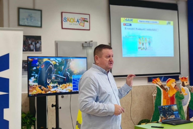 Djeci se potom obratio edukator HAK-a Ilija Šarić, inače Voditelj Ureda cestovne sigurnosti i prometne preventive, koji je održao uvodno predavanje.
