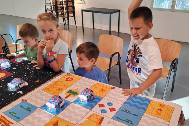 Polaznici su programirali koristeći robo pčelice (Blue-Bot i Bee-Bot). Pomoću tipki na robotima, usmjeravali su robo pčelice prema zadanim ciljevima, pritom razvijajući logičko razmišljanje i vještinu slaganja instrukcija. Na kraju radionica posebno oduševljenje polaznika izazvali su humanoidni roboti i robot pas, a cijeli sadržaj pridonio je buđenju interesa za STEM područje.